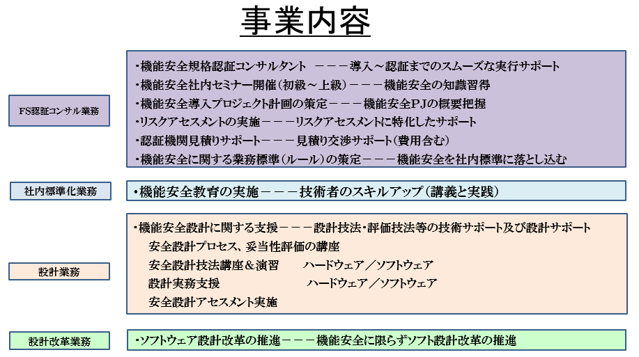 機能安全(FS)認証に向けたコンサルタントの会社です